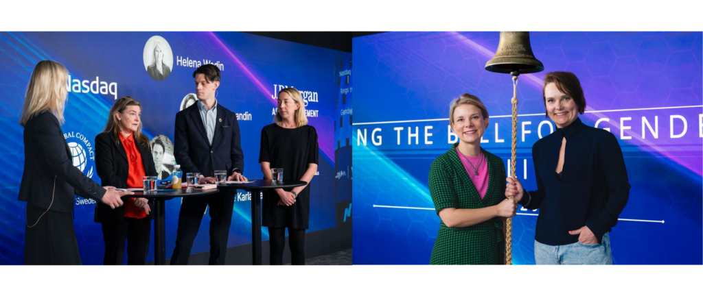 Efter klockringningen följde ett panelsamtal där UN Women Sveriges generalsekreterare Ulrika Grandin, deltog tillsammans med Helena Wedin från Nasdaq Women in ETFs Sweden, Philip Thormark från UN Global Compact Network Sweden samt Caroline Karlander från J.P. Morgan Asset Management. Samtalet lyfte hur aktörer inom finanssektorn och civilsamhället kan bidra till att påskynda arbetet för jämställdhet genom investeringar, samverkan och långsiktiga strategier.