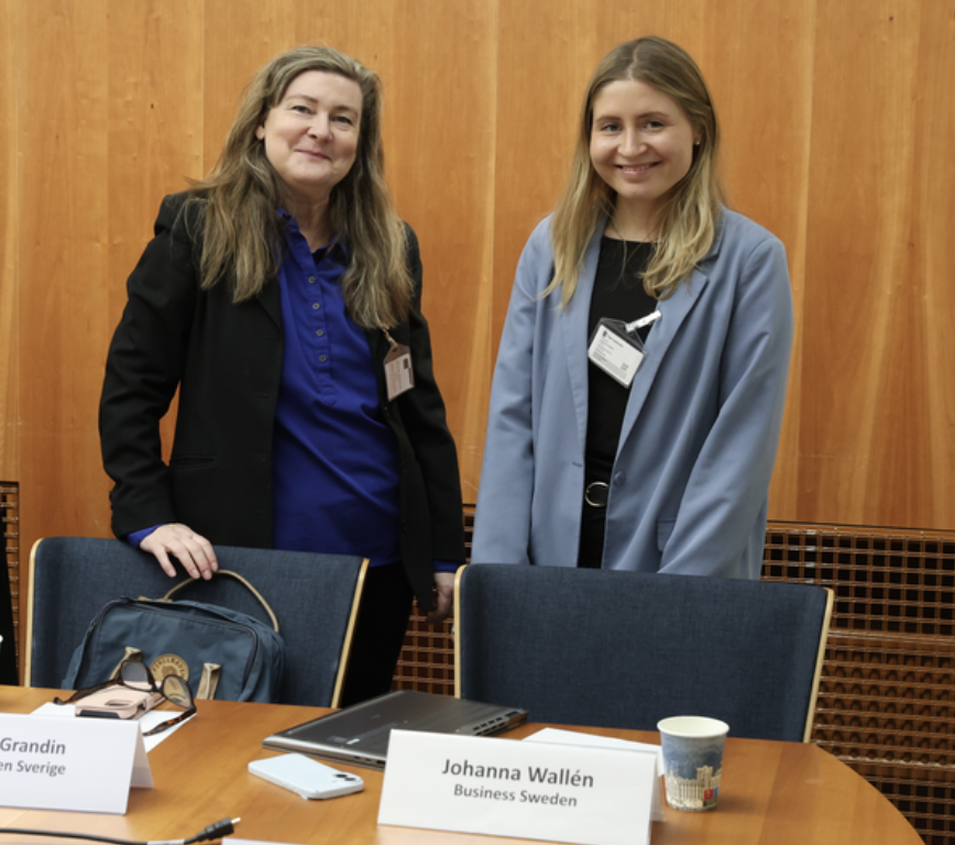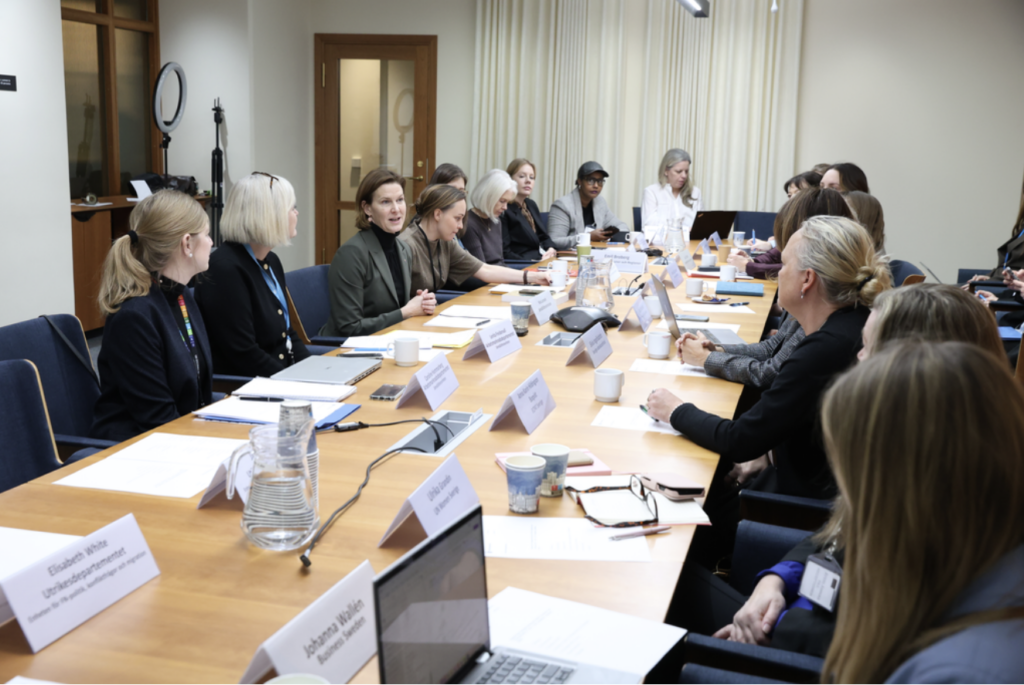 Bildtext: UN Women Sveriges generalsekreterare Ulrika Grandin och Johanna Wallén från Business Sweden på delegationsmöte. Foto: Mia Hedelius, Regeringskansliet
